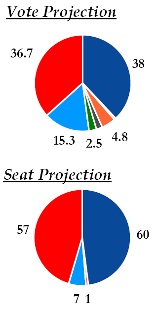 The CAQ is set for a very bad showing, at between two and 11 seats, while Québec Solidaire could win two or zero seats. Option Nationale has benefited from the uncertainty, as they could now potentially pull one seat (Jean-Martin Aussant's) out of the fog.